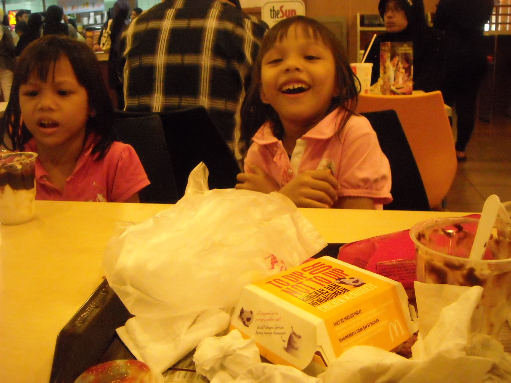 | Kakak Wani dengan Kakak Wina pun makan ice cream jugak ayah. |